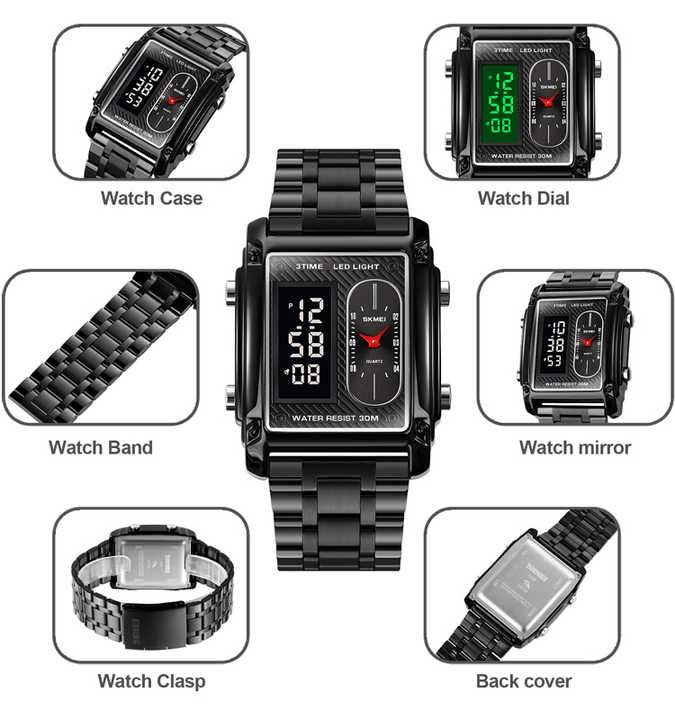 SKMEI 1868 Fashion Design Luxury Stainless Analog Digital Wrist Watch